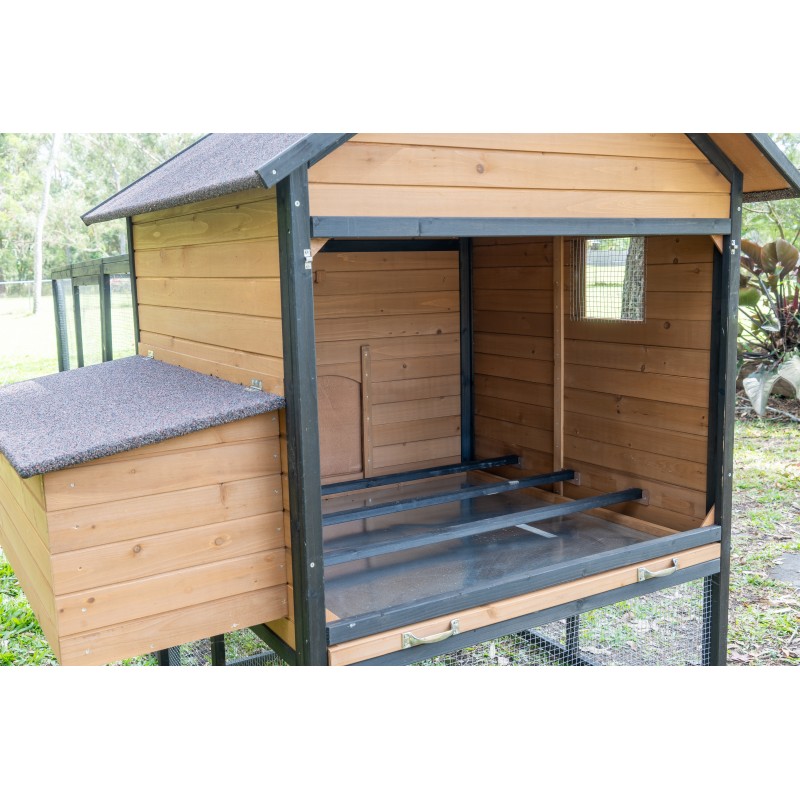 The Brunswick XXL chicken coop has masses of space for your chickens (up to 10 of them), and lots of outside space to scratch around in. It has bigger nesting boxes and very long roosting poles so they won't be jammed in tight.