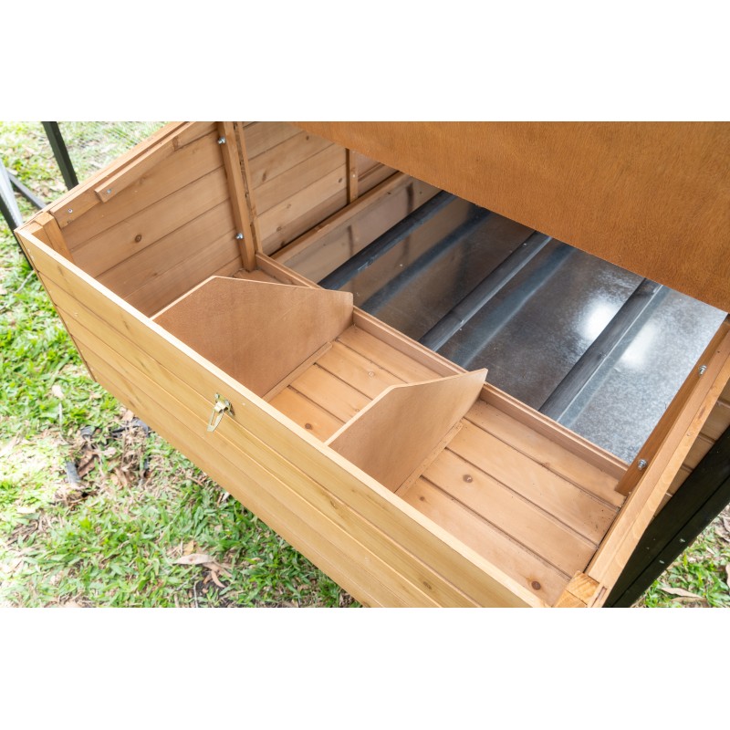 * Three nesting boxes with removable roof for cleaning/collecting eggs